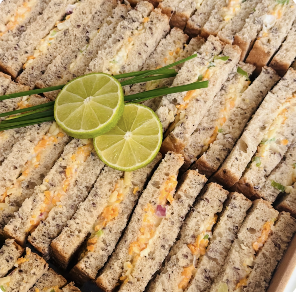 6 Lemon pepper chicken burger, 6 Bahn mi with soy marinated chicken, 6 French dip with pulled beef , 6 Veggie sandwich (V) 6 Prawns rolls.